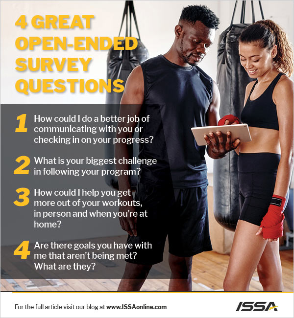 For this, you need to ask very specific questions. Don't ask them if they like things or not. Avoid binary questions that have yes or no answers. Instead, ask a question like, "how could I do a better job in your workouts?" Or, you could ask, "how could I support you more in your diet?"